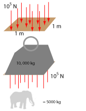 to be about 100 KPa. This means air pressure can support a mass of 10, 000 kg sitting on a 1 m platform. A large