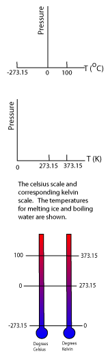 Study the diagrams and graphs below to see how the Kelvin scale scale follows from the celsius scale.