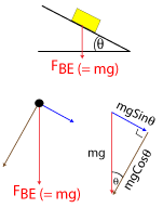 to the slope (blue). Put these vectors head to toe, use simple trigonometry and you will find the force on a block down a slope = mgSinq.